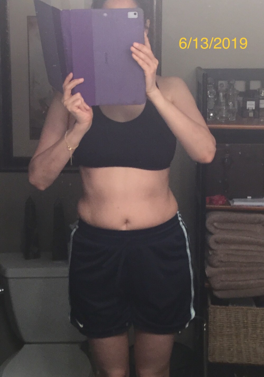 I’ve been working out and dieting since March and wasn’t seeing any results on the scale. Zero results. That was deflating but I kept going, depriving myself of Pepsi (which I hardly think of anymore) and eating smaller portions.