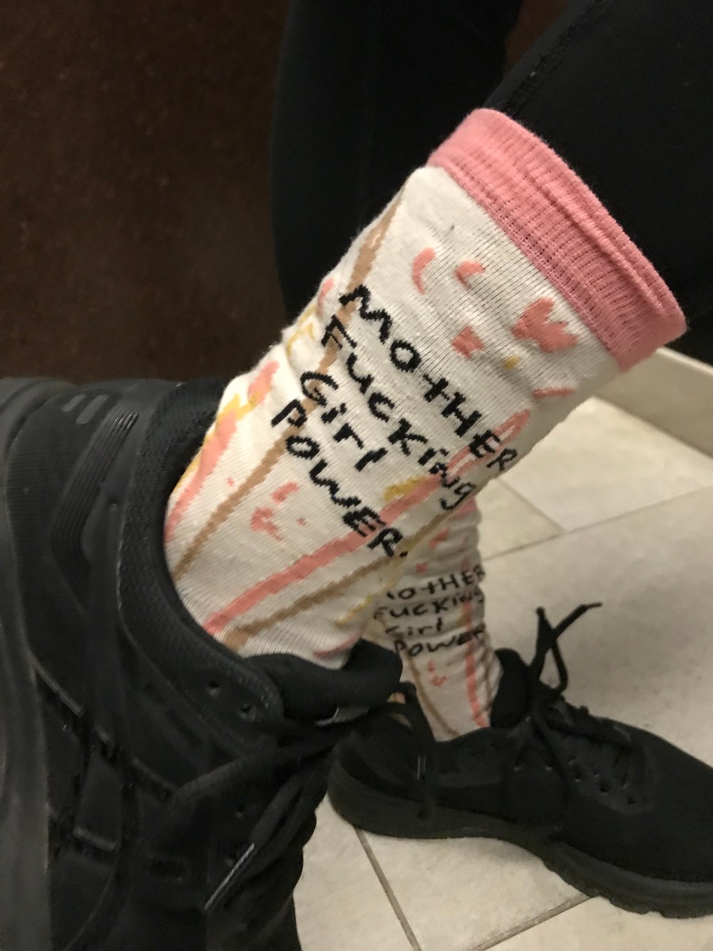 My daughter was dressed to run. Wearing all black, my husband called her a Navy SEAL or, more apropos, an assassin. The only departure to her sleek, aerodynamic outfit were her motivational socks: