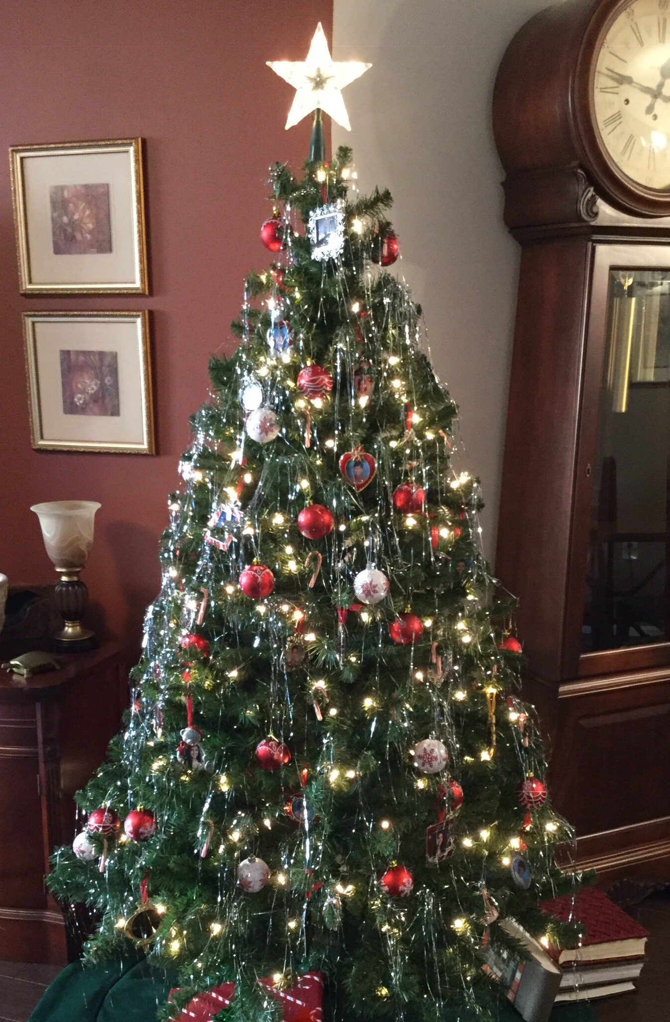 That dumb tree is decorated simply — with white lights, picture ornaments, candy canes, orbs, and those silver icicles that have become so difficult to locate I am convinced I’m the only one trying to. You may remember them? Everyone starts by putting them on the stupid tree one strand at a time but ends up throwing them at the wretched tree in big, psychedelic clumps.
